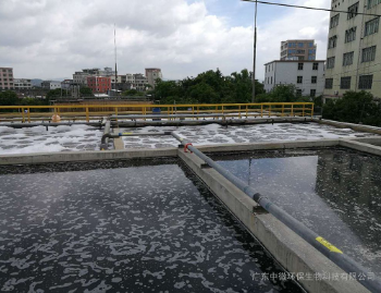 (2)接觸氧化池:調(diào)節(jié)池后出水自流至接觸池進(jìn)行生化處理,接觸氧化時(shí)間可達(dá)6小時(shí),填料為半軟性填料(即以硬性塑料為支架,上面縛以軟性纖維),它可以防止生物膜生長后纖維結(jié)成球狀后減小填料的比表面積,易結(jié)膜、不堵塞。
