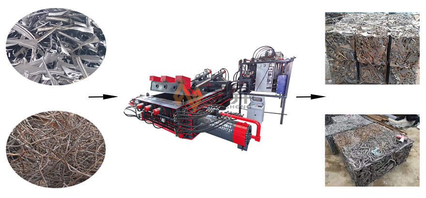 Y81系列金屬液壓打包機主要適用于煉鋼廠,回收加工行業及有色,黑色金屬冶煉行業??蓪⒏鞣N金屬邊角料,鋼刨花,廢鋼,廢鋁等擠壓成長方體,圓柱體,八角形等各種形狀的合格爐料,以降低運輸和冶煉成本。